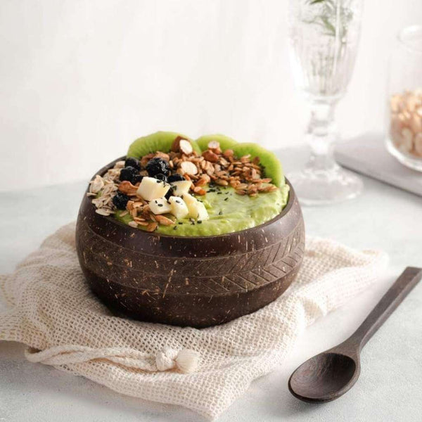 Pozbądź się plastikowych misek i zastąp je zdobioną miseczką z kokosa. Ten ekologiczny zestaw dodaje egzotycznego uroku każdej kuchni, jednocześnie wspierając zrównoważony rozwój.